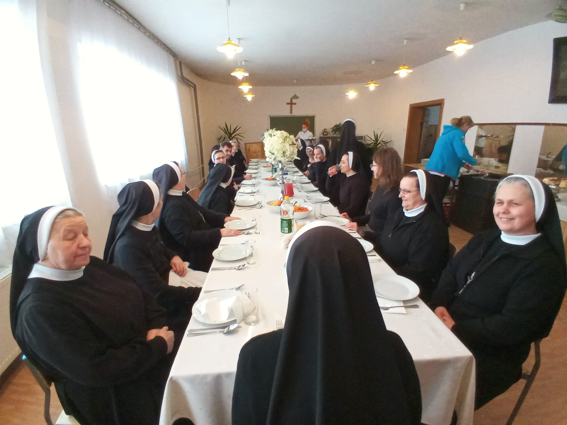 Po Mszy św. w naszym domu przy ul. Rydygiera spotkaliśmy się na obiedzie, który przygotowała zaprzyjaźniona z siostrami firma cateringowa. Był to czas wspólnego bycia w atmosferze radości i nadziei rychłej beatyfikacji biskupa Szelążka. Cieszymy się, że mogłyśmy przyjąć tak zacnych gości i już czekamy na następne spotkanie.